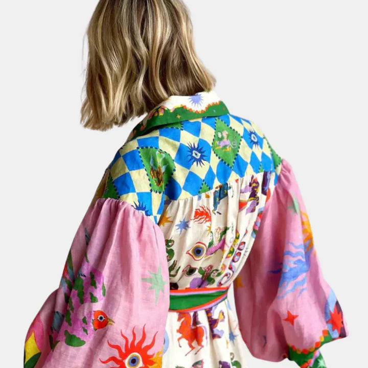 This brightly coloured Delphina Italian dress is perfect to wear on that one beautiful spring day. This beautiful maxi dress is artistically designed and made with the best quality materials, creating a beautiful aesthetic that will last. Wearing this dress will boost your confidence and make you shine all day long. A flowing fabric and premium materials ensure that you can wear this dress perfectly during the warmer days. This Italian dress should not be missing and your wardrobe!